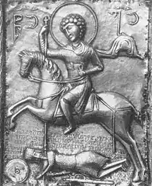The church preserves an 11th-century repoussé silver icon of St. George of Ipari, showing the equestrian saint killing Diocletian. According to an accompanying inscription it was commissioned by the certain Marushan from a goldsmith named Asan.[2][4]