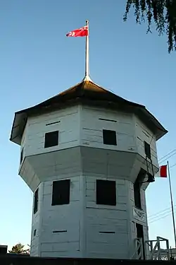 The Nanaimo Bastion is a historical octagon-shaped blockhouse located at 98 Front Street in Nanaimo, British Columbia, Canada. The Hudson's Bay Company, which then held a royal lease on all of what was then the Colony of Vancouver Island, built it between 1853 and 1855 to defend its coal mining operations in Nanaimo. It has been called "Nanaimo's premier landmark", because of its shape and its high visibility from both land and sea.[1]