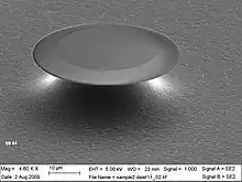 24. Shomroni, Itay (2009-08-02), English: It's a SEM picture of a microdisk resonator, about 40 um diameter, in order to create a toroid there needs to be a CO2 reflow. Later it can be used as an optical whispering gallery modes resonator., retrieved 2021-03-02