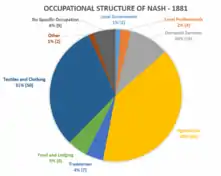 This contrasts greatly from some of the traditional industries which were previously common in the village. In 1881, the main industries of the parish were agriculture (40% of the population), and textiles (31% of the population).[17]