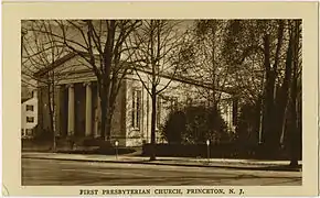 The Nassau Presbyterian Church is a historic congregation located at 61 Nassau Street in Princeton, New Jersey, United States. It has been the home of many important figures in the history of Presbyterianism in the United States as a result of its proximity to Princeton University and the Princeton Theological Seminary. The church operates the Princeton Cemetery and is a contributing property to the Princeton Historic District. The current pastor is The Reverend Dr. David A. Davis.