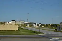 The National Bio and Agro-Defense Facility (NBAF) is a biosafety level 4 research laboratory in Manhattan, Kansas, operated by the United States Department of Agriculture. The facility opened in June 2023.[1] The facility is designed to combat biological threats involving human, zoonotic, and foreign animal diseases. The NBAF replaced the aging Plum Island Animal Disease Center (PIADC) on Plum Island, New York.[2] The primary research tenants of the facility are the Agriculture Research Service (USDA-ARS) and Animal Plant Health Inspection Service, Veterinary Services (USDA-APHIS-VS).[2][3] Construction on the 574,000-square-foot (53,300 m2) facility officially began in May 2015, and was scheduled to be completed by May 2021. The ongoing COVID-19 pandemic, however, has delayed scheduled commissioning to October 2021, followed by further delays to Spring, and finally summer 2023.[2][4][5][6] Operations will be fully transferred from the Plum Island facility by 2023.[7] The facility employs between 250 and 350 people.[2][3] The facility is a constituent member of the Biosafety Level 4 Zoonotic Laboratory Network, and is currently led by Alfonso Clavijo.