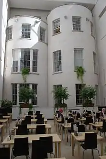 A new wing, called the Millennium Wing, was opened in 2002. Unlike the previous two extensions, this new wing has street frontage and the English architects Benson & Forsyth gave it an imposing Bowers Whitbed, Portland Stone façade and grand atrium. The design originally involved demolishing an adjoining Georgian terrace house and its ballroom mews; however, the Irish planning appeals authority, An Bord Pleanála, required that they be retained.