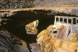 Due to the construction of the Potrerillos Dam to the southwest of the city of Mendoza, they decided to build 10 km of road in a higher zone with two road bridges. This section opened on 23 August 2004.[16] This part of the route generated controversy during the planning period because it passed through an important paleontological deposit.[17]