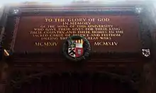 Plaque depicting the arms of the University of Aberdeen and its four nations (in each corner) in King's College Chapel.