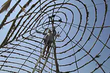 Nature Belle, a public artwork by American artist Roy Staab, was located in the middle of a round-about at the intersection of the Hank Aaron Trail and 25th Street, near Milwaukee, Wisconsin.[1] A site-specific sculpture constructed from natural local materials, the finished bell was supported by a box elder tree and was approximately 45 ft. in height and 35 ft. in diameter. Located in the center of a busy traffic circle, it was viewed mostly by passing motorists. Like most of Staab's ephemeral sculptures, the work is no longer extant.[2] It was completed on June 6, 2006, and destroyed by a storm on September 8, 2006.[3][4]