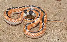 Neelaps calonotos, also known commonly as the black-striped burrowing snake, the black-striped snake, and the western black-striped snake, is a species of mildly venomous burrowing snake endemic to Australia. The specific epithet calonotos ("beautiful-backed") refers to the patterning on the upper surface of the body.[3]