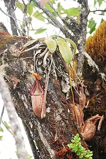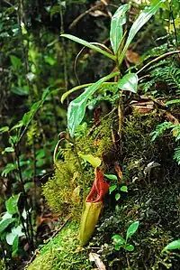 In addition, Bruce Salmon and Ricky Maulder found N. mikei × N. ovata and N. gymnamphora × N. ovata on Mount Pangulubao.[8][15] Some authors consider N. xiphioides to be distinct from N. gymnamphora and so this hybrid is sometimes listed as N. ovata × N. xiphioides.[15]