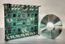 Neurogrid is a piece of computer hardware that is designed specifically for simulation of biological brains. It uses analog computation to emulate ion channel activity, and digital communication to softwire structured connectivity patterns. Neurogrid simulates one million neurons[1] and six billion synapses in real time. The neurons spike at a rate of ten times a second. In terms of the total number of simulated neurons, it rivals simulations done by the Blue Brain Project. However, by running the simulation of whole neurons, instead of simulation on molecular level, it needs only one millionth of Blue Brain's power. The entire board consumes less than two watts of electrical energy.