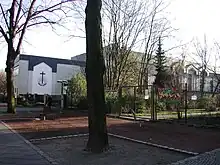 ![]() New Apostolic church hall with emblem | |