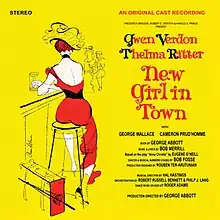 The Broadway production opened on May 4, 1957 at the 46th Street Theatre, where it ran for 431 performances. The show was written as a star vehicle for Gwen Verdon, who had just had a hit with Damn Yankees and won raves for her portrayal of Anna, a role that showed off her acting, singing and dancing abilities to maximum effect. Composer Bob Merrill was at the beginning of a string of 1960s successes. New Girl in Town, produced by Frederick Brisson, Robert E. Griffith and Hal Prince, was well received by both critics and audiences.[2] Verdon and co-star Thelma Ritter shared the Tony Award for Best Actress in a Musical, and the show received three other Tony nominations, including the Best Musical and best choreography for Bob Fosse. Verdon, somewhat unusually, had three standbys: one each for acting, singing and dancing.