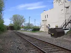 ![]() The site of the railroad's former Derby Junction station. The station no longer exists, but the tracks are in service as part of Metro-North's Waterbury Branch. | |