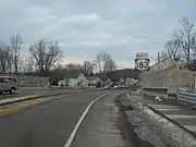In 2007, the New Jersey Department of Transportation proposed the elimination of the Netcong Traffic Circle, located at the intersections of U.S. Route 46 and Route 183 just north of the interchange with Interstate 80. The project was to produce two outcomes: replacement of the New Jersey Transit bridge that Route 183 crosses, and the elimination of the Netcong Circle with a signalized intersection. The project had issues dealing with the vertical clearance of the overpass for U.S. Route 46 westbound. The removal of the circle would eliminate this bridge, and the land would go to use as the new signalized intersection, with pedestrian and bicycle fittings. The entire project cost about $13.3 million (2009 USD) of state and local funds to construct.[8] The Netcong Circle was replaced with a temporary junction in January 2013; the permanent intersection configuration opened in August of that year. The new bridge over the New Jersey Transit line opened in March 2013.[9]