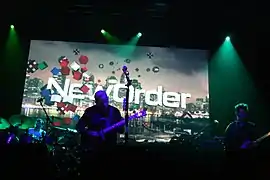 New Order are an English rock band formed in 1980 by vocalist and guitarist Bernard Sumner, bassist Peter Hook and drummer Stephen Morris. The members regrouped after the disbandment of their previous band Joy Division due to the suicide of lead singer Ian Curtis. They were joined by Gillian Gilbert on keyboards later that year. New Order's integration of post-punk with electronic and dance music made them one of the most acclaimed and influential bands of the 1980s.[1] They were the flagship band for Manchester-based independent record label Factory Records and its nightclub The Haçienda, and they worked in long-term collaboration with graphic designer Peter Saville.[2]