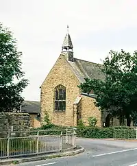 The plan of the church consists of a nave with a south aisle, and a chancel with a vestry to the north. At the west end is a slated bellcote. Under the east window is flushwork. Inside the church, between the nave and the aisle, is a four-bay arcade carried on clustered piers. The stained glass was made by Abbott and Company in 1935.[5] The two-manual organ was built in 1882 by John Laycock of Keighley, and has since been overhauled by J. W. Walker.[6]