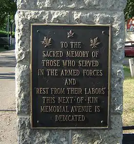- ↑ Next of Kin Memorial Avenue. Canadian Register of Historic Places. Retrieved 19 August 2012.