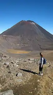 Mount Ngauruhoe (Māori: Ngāuruhoe) is a volcanic cone in New Zealand. It is the youngest vent in the Tongariro stratovolcano complex on the Central Plateau of the North Island and first erupted about 2,500 years ago.[3] Although often regarded as a separate mountain, geologically, it is a secondary cone of Mount Tongariro.