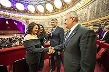 Ciucă is the recipient of the Ordre national du Mérite of the French Republic, Commander rank,[38] and of the National Order of Merit of Romania, Commander rank.[39] In 2019 he was awarded the Order of the Star of Romania, Officer rank.[40] In 2020, he was awarded the Legion of Merit by U.S. Ambassador Adrian Zuckerman.[41]