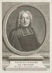 Nicolas Lenglet Du Fresnoy (5 October 1674 – 16 January 1755) was a French scholar, historian, geographer, philosopher and bibliographer of alchemy.