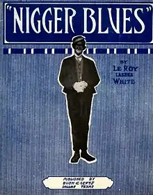 "Nigger Blues", written by Le Roy "Lasses" White (1888 – 1949), was one of the first blues songs published.[1] Copyrighted by the Texas-born White in 1912,[2] it was first titled "Negro Blues", but for unknown reasons when White published it in 1913, he retitled it.[3]