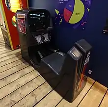 Two arcade cabinet styles were manufactured: upright and sit-down. The upright version has a blacklight installed inside the cabinet which illuminated the bezel.[5][6]