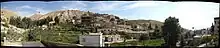 The first and smallest Roman temple was built in the 1st century AD. As one enters the gate at the edge of the village into the archeological park that is maintained by the Department of Antiquities, the Lower Small Temple appears first and directly ahead to the right of the creek. The temple was dedicated to the Syro-Phoenician mermaid goddess Atargatis and her consort, the god Hadaranes.[5] Hadaranes is the local name of Hadad, the god of thunder, lightning and rain. Atargatis is the goddess of fertility. A small water channel runs through the podium of the temple leading to the belief that water purification rituals were conducted at the temple. The entrance of the temple faces south; it consists of a stairway leading to a portico with four columns with Ionic-style capitals. The cella, or central space of the temple, is accessed through three doors at the top of the stairway, and the restricted adytum is accessed by a stairway of nine steps at the end of the cella. The statue of the god or goddess was located inside the adytum and was usually not accessible to the public. In addition to the water channel running through and around the podium, there is also a smaller water channel that runs from the base of the statue of the god or goddess in the adytum down to the center of the cella. In the remains of this temple, archaeologists discovered a stone with an inscription mentioning a “female virgin prophet” named Hochmea. Hochmea was the priestess of Hadaranes and Atargatis; she dedicated herself to those two gods and cut herself off from the world. The stone inscription says: "According to an order from the god, she stopped eating bread for 20 years and lived for 100 years." This stone was removed by archaeologists and is no longer located at the temple site. This small temple was apparently used for the public cult, which allowed everyone to participate in purification rituals.[6]