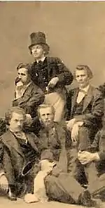 ![]() Nikolai Petrov (in the hat) with other members of the Artel | |
