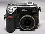 The Nikon Coolpix 8400 is a digital camera announced September 16, 2004, succeeding the Nikon Coolpix 5400. It is a high-end model among the brand's range of bridge cameras with eight megapixels, only below the Nikon Coolpix 8800 equipped with a more powerful zoom lens. Besides its pixel count, its main selling point is the very wide angle lens, equivalent to a 24 mm in 135 film format. Its only competitor at a comparable price is the Kodak EasyShare P880, which has longer telephoto lens but is bigger and lacks a swivelling screen.