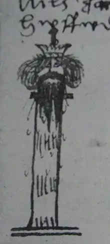 Nils Dacke's severed head. Drawing by the 16th-century chronicler Joen Petri Klint.