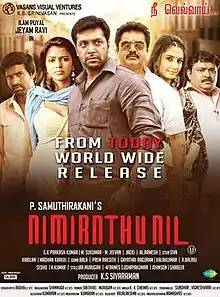 Nimirndhu Nil (transl. Stand upright) is a 2014 Indian Tamil-language action drama film written and directed by Samuthirakani featuring Jayam Ravi in dual role and Amala Paul.[1] It was produced by KS Sreenivasan's Vaasan Visual Ventures.[2] The film's soundtrack and background score were composed by G. V. Prakash Kumar.[3] Jayam Ravi played a revolutionist for a social cause.[4] The film, which was simultaneously made in Telugu as Janda Pai Kapiraju with Nani in place of Jayam Ravi, released on 8 March 2014 and received mostly positive reviews.[5]