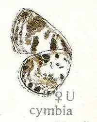 Niphanda cymbia, the pointed Pierrot, is a small butterfly found in northern India (Sikkim to Assam), Burma and northern Borneo (N. c. reter Druce, 1895) that belongs to the lycaenids or blues family.