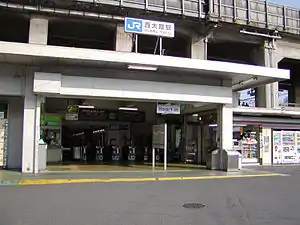 Nishiōji Station (西大路駅, Nishiōji-eki) is a railway station located in Minami-ku, Kyoto, Japan. It serves the JR Kyoto Line (Tōkaidō Main Line) of West Japan Railway Company. The distances to major stations are 2.5 km (1.6 mi) to Kyoto Station, 40.3 km (25.0 mi) to Osaka Station and 516.1 km (320.7 mi) to Tokyo Station.