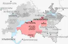 The Nizhnekamsk constituency (No. 28[lower-alpha 1]) is a Russian legislative constituency in Tatarstan. In 1993-2007 the constituency was centered in Nizhnekamsk and stretched west to the suburbs of Kazan. However, in 2016 the constituency was redrawn significantly: it retained Nizhnekamsk, Chistopol and Zainsk but now the constituency stretches to Southern Tatarstan, which it took from Almetyevsk constituency; the western part of the former Nizhnekamsk constituency was partitioned between the Privolzhsky, Moskovsky and newly created Central constituencies.