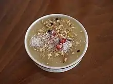 There is a Turkish dessert in remembrance of Noah, which is called Ashure or "Noah's pudding". It is made out of grains, nuts, and dried and fresh fruits. These are believed to be the few ingredients left on the ark, used by Noah and his family to celebrate the end of the flood.[67]