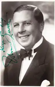 Born in Deal, Kent, he moved to London as a child and worked as a clerk before joining Charles Heslop's Brownies concert party troupe. After serving in the military in the First World War, he made his first stage appearance at the Lewisham Hippodrome in 1919, billed as "A song, a smile, and a piano".[1] He made his first radio appearance in November 1922, on the 2LO station set up by the newly-established British Broadcasting Company.[2] His billing was soon changed to "A song, a joke, and a piano" when it was realised that a smile could not be conveyed over radio,[3][4] and he described himself as "Norman Long - all teeth and trousers".[5]