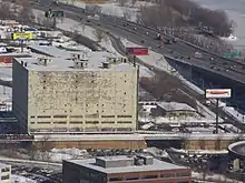 During the 1960s the Albany municipal landfill was located on the site of a former river water filtration plant that operated from the early 20th century to the 1930s. While the tanks are assumed to have been demolished, several structures associated with the plant are still buried under the trash, such as concrete foundations and tunnel structures.[27] Located along Erie Boulevard on approximately 45 acres (18 ha) between Interstate 787 (I-787), Interstate 90 (I-90), Erie Boulevard, and the Albany County Wastewater Treatment Plant, it was closed to municipal waste in 1969 in favor of a new landfill in the Albany Pine Bush area in the western section of the city.[27][28] The landfill continued to operate as the North Albany Demolition Landfill, for demolition/construction debris until 1988.[29] The city's Department of Public Works garage was built on a part of the landfill,[30] with land near by used for the creation of the 92,000 square feet (8,500 m2) Erie Boulevard Commerce Park on 16.6 acres (6.7 ha).[31] Original plans were for Erie Boulevard, which was built on top of the old Erie Canal, to be extended through to Menands to Exit 6 of I-787.[31][32] Though Albany would have borne all the costs of construction Menands still refused.[32] Erie Boulevard was subsequently built to the border and no further in 1988 as part of the park construction.[31][33]