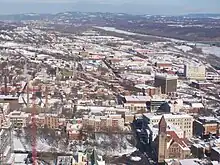 In 2005, a completely renovated Public School No. 20 on North Pearl Street was renamed North Albany Academy.[47] Begun in 2004 and completed in 2005 a YMCA (Y) was built attached to the school, with the students using the gym and pool during the day. The Y includes a branch of the Albany Public Library and a day care for pre-school children. The Y was the first in the Capital District to involve the organization partnering with a local government, among other sources funding came from the Albany Housing Authority, Citizens Bank, the state Dormitory Authority and the state Office of Children and Family Services.[48] The Y was the first in the United States built using tax breaks from the New Market Tax Credit and was the first built in Albany since the 1960s.[49]