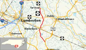 North Carolina Highway 131 (NC 131) is a primary state highway in the U.S. state of North Carolina. It connects the city of Bladenboro to Fayetteville, via NC 87, and Whiteville, via US 701.