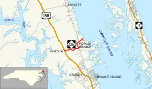 The entire route is in Poplar Branch, Currituck County.