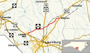 North Carolina Highway 144 (NC 144) is a primary state highway in the U.S. state of North Carolina. It runs from Laurel Hill to Wagram, in the North Carolina Sandhills.