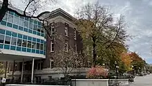 Built to replace Pattee Hall as the home of the University's Law School at the request of the School's third dean, Everett Fraser; whom the building was named after; as he believed Pattee's classrooms were inadequate and its library too flammable. The Law School remained at Fraser Hall for 50 years until it moved to Mondale Hall,[27] after which Fraser became a multi-purpose building. It was renovated once in the 1950s but received no structural upgrades for almost 70 years, resulting in the approval of a $144.7 million expansion by the State Legislature in 2023.[28] The State's grant covers two thirds of the cost, while the remaining third is set to be paid by the College of Science and Engineering over the course of 20 years.[24] Construction began in September of that year, and is expected to last until 2025. The original renovation is to be removed, while 18 new chemistry labs, collaboration spaces, and general-purpose classrooms will be added.[28]