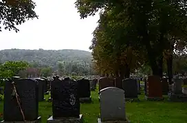 The cemetery originally served Roman Catholics and rural French Canadians. Italian, Portuguese, Japanese, Orthodox Greek, Polish, Ukrainian and Huron are also represented, indicated in many instances by ethnic motifs on gravestones.[6] The cemetery is adjacent to the Mount Royal Cemetery, a predominantly English-speaking and originally Protestant adjacent burial ground, the Shaar Hashomayim Cemetery, an Ashkenazi Jewish burial ground and Temple Emanu-El Cemetery, a Reformed Jewish burial ground. These four abutting cemeteries on the slopes of Mount Royal contain a total of 1.5 million burials.
