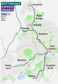 - ↑ "Background to the NET Phase Two Project". Tramlink Nottingham. Archived from the original on 2 February 2012. Retrieved 5 August 2015.