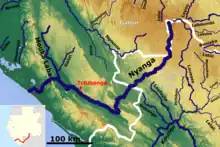 The Nyanga River, 600 km, (French: Rivière Nyanga) is a river that runs through southern Gabon and northern Republic of the Congo. It is the second most important river in Gabon after the Ogooue. It is well known for the numerous rapids that break up its otherwise smooth course.[1]