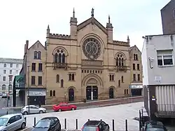 The venue for the Leeds Academy on Cookridge Street in the city was originally opened in 1885 by Prince Albert[3] and is a grade II listed Gothic building.[4][5] In the nineteenth century there was a legal dispute with the Sunday Lecture Society that met here as they were accused of disturbing the sabbath. [6] The venue was known originally as the Coliseum where it hosted many different events during the early 20th century such as political meetings and circus shows.[7] Between the 1930s and 1990s the building accommodated a cinema, television studio and bingo hall.[7]