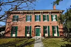 The Oakes-Wood House, also known as the Grant Wood House, is a historic building located in Iowa City, Iowa, United States. Nicholas Oakes, who established one of the first brickyards in town, built this house in 1858.[2] The two-story brick Italianate structure features a T-shape floor plan, low gable roof, bracketed eaves, and three brick chimneys.