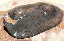 When tracking down prey, O. ficki follows the trails of substrate left by gastropods. Due to its large size, O. ficki, when catching up to prey, is able to easily cover the gastropod with its body to immobilize it. When this is done, O. ficki can evert its pharynx and attach it to the prey, crushing it into smaller pieces before sucking it into the intestine.[4]