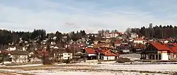 The parish village (Pfarrdorf) lies at a height of 780 metres about 2 kilometres southwest of Spiegelau on the southern side of a mountain ridge up to 790 metres high with good views.