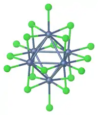 Octahedral clusters are inorganic or organometallic cluster compounds composed of six metals in an octahedral array.[1] Many types of compounds are known, but all are synthetic.