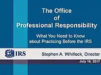 - 1 2 3 "The Office of Professional Responsibility (OPR) At-A-Glance". US Internal Revenue Service. Retrieved February 4, 2019.